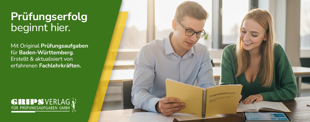 Der GRIPS Verlag ist dein zuverlässiger Partner für die optimale Prüfungsvorbereitung. Wir bieten dir die aktuellsten Originalprüfungsaufgaben für Kaufmännische Berufsschulen, Berufskollegs und Berufsfachschulen in Baden-Württemberg.